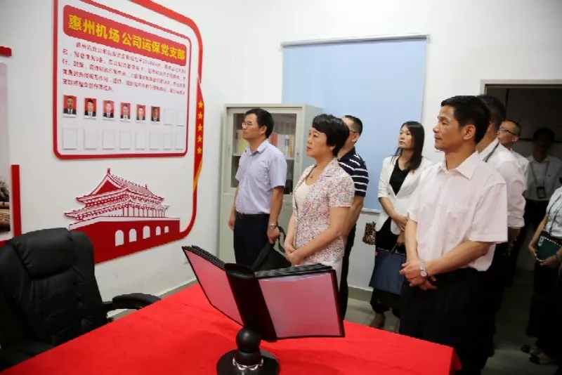 蔡秀芬一行首先到达惠州机场航站楼现场调研党建和生产运营情况,参观了各支部党员活动室建设进展,并与惠州机场公司干部职工召开座谈会。