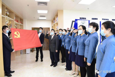 机场集团余睿文在党支部书记带领下,面对党旗庄严宣誓