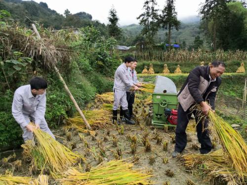 志愿者们帮助毛某期间获悉,该村的刘某今年栽种的2亩多水稻,也因为家里缺乏劳动力,面临霉烂在地里的危险。粤电贵州公司得知情况后,又立即组织志愿者们来到刘某家帮助抢收稻谷。“你们水没喝一口,饭没吃一顿,无偿帮忙收割,太感谢你们咯!”刘某连声道谢。