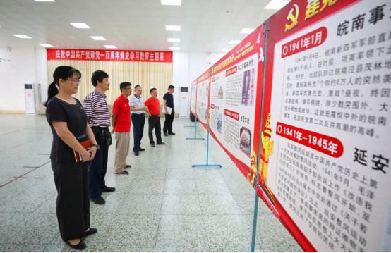 主题展共设二十六个展板,以时间顺序回顾党的历史事件,易学易记,有很强的教育性。