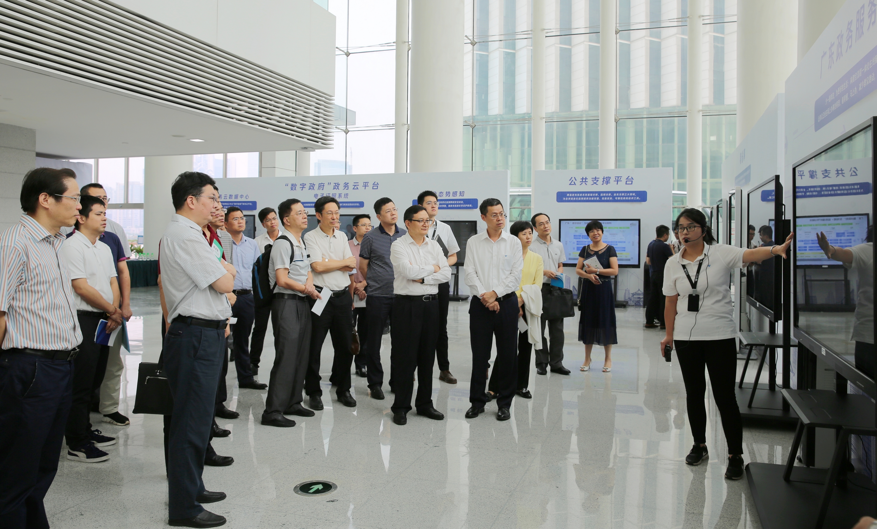 调研组首先来到数字广东公司展厅,观看了“政务服务网”、“政务云平台”、“政务协同办公平台”和“公车管理平台”等业务系统的演示,随后双方召开座谈会。