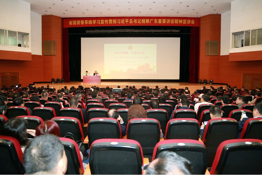平博888 全体机关干部、监事会成员、专职外部董事;省属企业领导班子成员、相关部门负责人及驻穗二级企业主要领导约500人参加宣讲会。