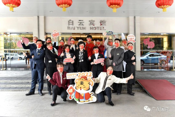 白云宾馆作为70年代广州市外贸系列工程之一,是为配合中国进出口商品交易会,于1976年6月1日建成开业,主要接待各国元首、国家领导人等客人。宾馆楼高120米,为当年全国“第一高楼”,被广州市定为标志性建筑,连续45年接待交易会旅客,是广州地区唯一一家从三星晋升五星的饭店。今年春节,白云人舍弃了与亲人团聚的快乐时光,坚守在平凡的一线岗位上,他们倾心付出,用热情、微笑服务每一位宾客,让宾客享受到“家”一般的温暖。过年啦,一直陪伴着您的白云人给您送上满满的新春祝福,祝大家新春快乐,虎年吉祥,阖家安康!