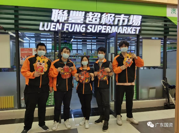 南粤集团旗下联丰超市澳大店位于澳门大学横琴校区,是南粤食品水产有限公司旗下31间联丰超市门店之一。联丰超市主营鲜肉、蔬菜、水果等鲜活食品,始终致力于为澳门市民提供安全、优质、低价、便利的生鲜食品和服务,目前已成为全澳最大的生鲜连锁超市。今年春节,联丰超市澳大店过节不打烊,切实保障澳大全校师生日常生活所需。值此佳节来临之际,奋战在抗疫保供一线的南粤人祝大家新春大吉、虎虎生威!