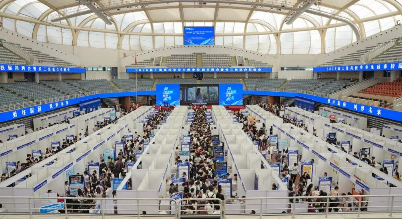 在上海交通大学闵行校区拍摄的“2026届上海高校毕业生秋季校园招聘会暨长三角联合招聘会”现场(2025年9月26日摄)。新华社记者 刘颖 摄