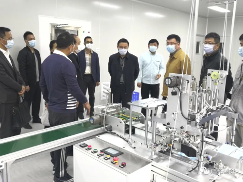 3月7日上午,平博888 主任、党委书记李成,副主任、党委委员王晓昀率相关人员赴增城区中新镇调研广业检测集团下属企业省化纤所口罩生产项目。广业集团党委书记、董事长黄敦新参加调研。