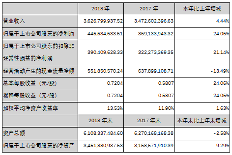 3月27日晚间,国星光电(股票代码:002449)发布了《2018年年度报告》,报告显示:2018年,国星光电实现营业总收入36.26亿元,较上年同期增长4.44%;归属于上市公司股东的净利润4.45亿元,较上年同期增长24.06%;截至2018年12月31日,资产总额为61.08亿元。