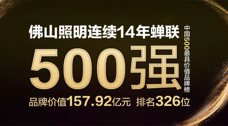 连续14年蝉联《中国500最具价值品牌》榜,这不仅是佛山照明综合实力的体现,更是多年来努力推进品牌差异化塑造、积极进行品牌战略升级密不可分,伴随着稳健的发展步伐,在佛山照明公司董事会“四转 三调 两结合”的战略部署下,相信佛山照明在未来道路上必将绽放更耀眼的光芒,朝着百年企业、百亿企业的目标阔步前行,续写辉煌篇章!