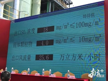 竣工投运仪式现场显眼处,明亮的LED屏实时显示出的“出口SO2浓度、出口风量流速、固体颗粒物”三个在线监测数据全部达到国家及省、市环保部门要求的“超低排放限值”水平。标志着韶冶厂“烧结机环集烟气超低排放技项目”技术改造取得了圆满成功,环保水平又登上了一个新的台阶,为韶关坚持生态优先、绿色发展再添新枝。