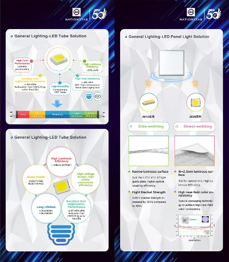 本次印度照明展,国星光电带来了通用照明系列器件产品及灯管、球泡灯、面板灯等一体化解决方案。国星光电产品经多年技术沉淀与市场检验,在可靠性、耐热性、抗硫化、光色均匀性、高显色性、批次一致性等方面均处于行业领先水平。
