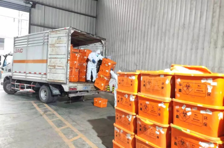为科学应对各地因肺炎疫情产生的医疗废物,确保在收运处置环节不发生蔓延扩散或二次污染,东江环保各分子公司严格遵守生态环境部最新发布的肺炎疫情医疗废物应急处置标准,加强员工自身防控和车辆、容器的消毒工作。针对涉疫情医疗废物的处置,设置独立作业空间,做到进厂消毒后立即焚化不贮存,同时大力加强内部工艺流程的监控与管理,确保焚烧处置设施工况稳定及污染物的达标排放。
