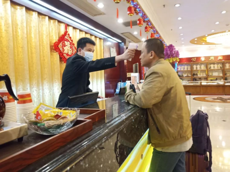 酒店坚持“早预防、早发现、早隔离”,对进店客人和员工每日进行体温检测,以保证员工与客人的安全。在公共区域展示疫情重要提示,提醒酒店客人注意事项,全方位做好防控工作。为有需求的住客提供口罩、免洗洗手液、消毒液、防感冒茶,安排专业人员为住客测量体温,做到防控措施全面到位。针对电梯、休息区等公共区域进行每小时清洁消毒,做到防控无死角。