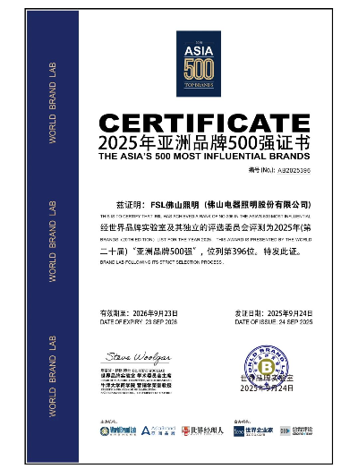 佛山照明连续两年入选,不仅体现了其在亚洲市场得到广泛认可,更标志着该品牌正稳步走向全球照明行业的舞台中心。
