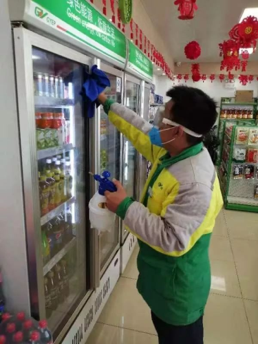 油站每班上岗第一时间对工作区域进行全面消毒。