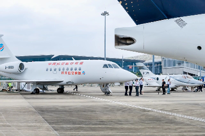 “达索猎鹰2000LX”专业航空医疗救援飞机亮相航空救援展区,引发广泛关注。