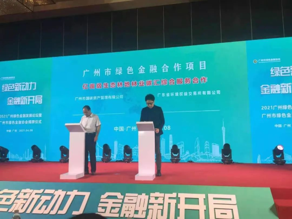 4月8日上午,在广州市绿色金融协会、广州绿色金融研究院联合主办的“2021广州绿色金融发展论坛暨广州市绿色金融协会揭牌仪式”上,广东省交易控股集团所属广东省环境权益交易所与广州市国碳资产管理有限公司签署《亿亩级生态林地林业碳汇综合服务合作协议》。本次论坛以“绿色新动力 金融新开局”为主题,致力打造互联互通、共享融通的绿色金融生态圈。