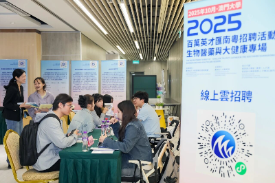 10月23日,生物医药与大健康专场招聘会在澳门大学举行,覆盖科研、生物医药、医疗健康等核心领域,广州国家实验室、中医药广东省实验室、广东医科大学、广药集团(澳门)等单位参会。