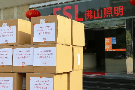 1月27日,佛山照明在获悉武汉“火神山医院”建设所需的专业照明灯具产品后,迅速从佛照湖北运营中心调配217件货物,含吸顶灯、灯管、支架、标志灯、应急灯等灯具产品,次日便安排工作人员送往武汉火神山医院承建方中建三局指定仓库;