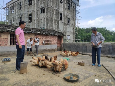 邓中华到贫困户杨日生家里走访,杨日生家通过养鸡养鸭实现增收