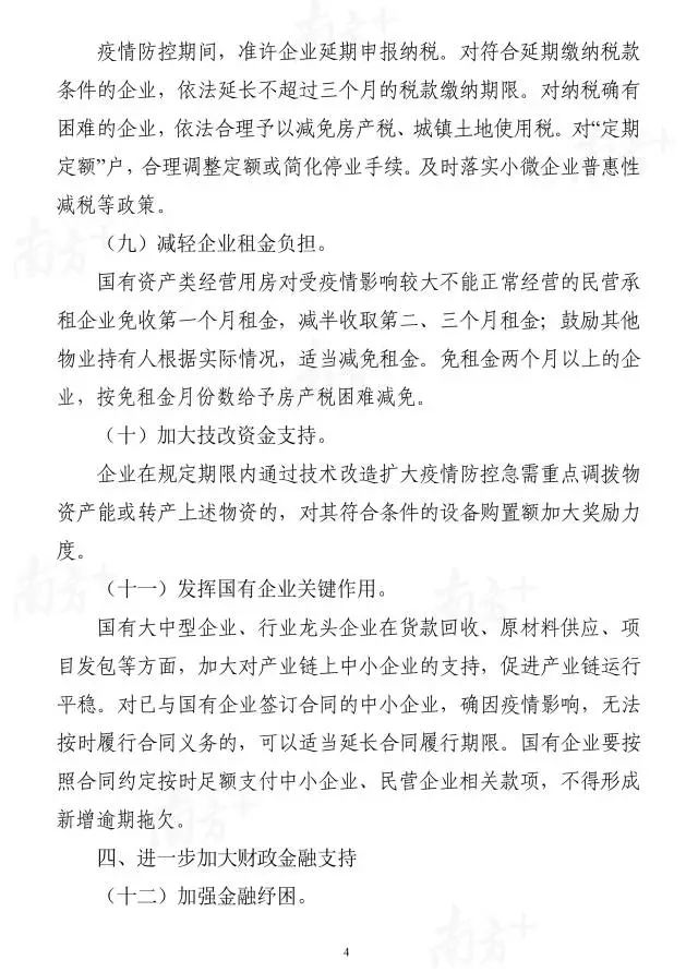 针对企业普遍反映的租金、税费和违约风险等问题,《政策措施》提出,疫情防控期间准许企业延期申报纳税。对符合延期缴纳税款条件的企业,依法延长不超过三个月的税款缴纳期限。对纳税确有困难的企业,依法合理予以减免房产税、城镇土地使用税。