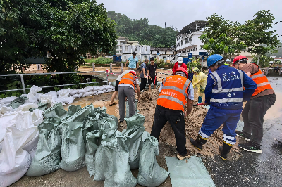 在抢险过程中,粤西供水充分发挥团队协作优势,统筹调配各方资源。面对现场作业面狭窄、大型机械设备难以展开等困难,抢险人员以人力为主、局部辅以小型设备的方式,在泥泞中连续奋战,累计堆砌沙袋超300个。同时,抢险突击队全程跟踪监测水文数据,与地方政府、水利部门保持实时沟通,确保抢险措施科学精准。