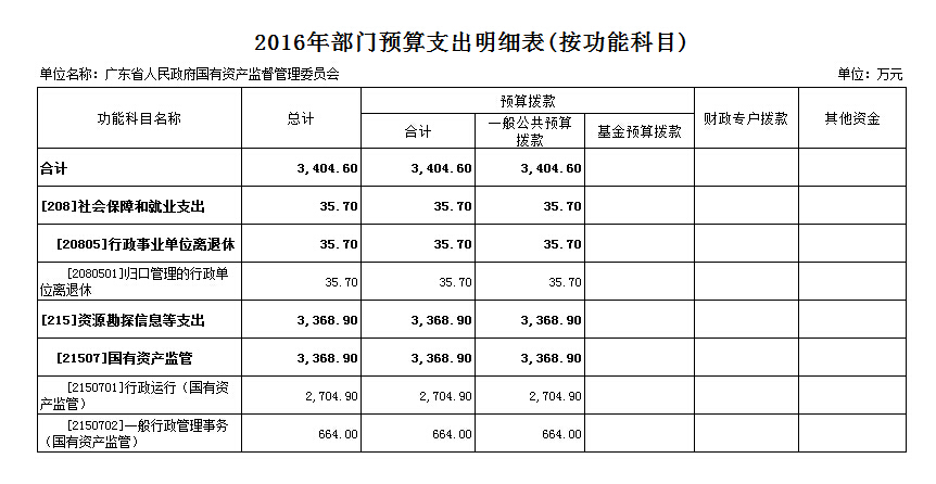 2016年部门预算支出明细表(按功能科目)