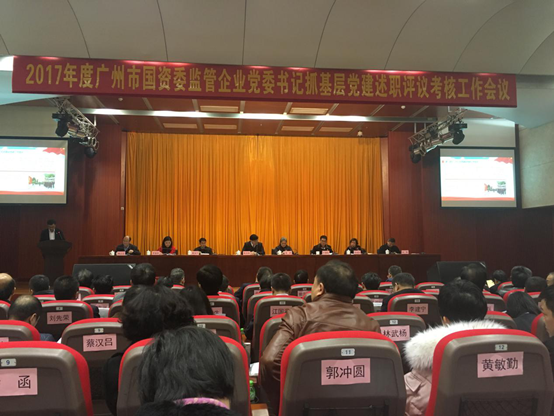 近日,广州市国资委党委组织召开2017年度监管企业党委书记抓基层党建述职评议考核工作会议。会议由广州市国资委党委书记、主任陈浩钿同志主持,广州市委组织部副巡视员温蔚同志出席会议,市国资委班子成员,外派监事会主席、机关各处(室)负责人,各监管企业党委书记或主要负责同志、专职党委副书记、负责党建工作的副职领导、“两代表一委员”及基层党员干部群众代表共137人参会。