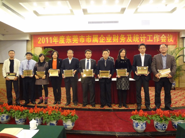 会议表彰了获得本年度财务工作先进单位的10家企业:东莞发展控股股份有限公司、东莞市轨道交通有限公司、东莞市公路桥梁开发建设总公司、东莞证券有限责任公司、东莞市虎门港集团有限公司、东莞市东江水务有限公司、东莞市虎门港澳客运公司、东莞银行股份有限公司、东莞信托有限公司、东莞市二轻石龙津威工业公司。