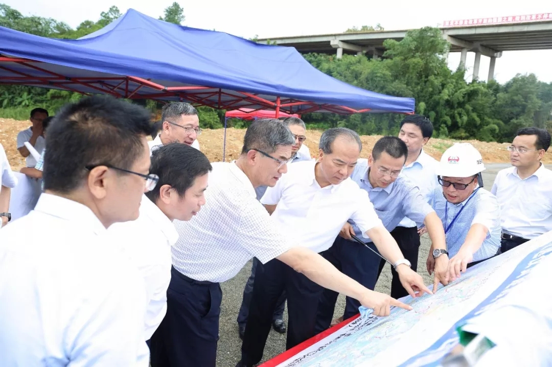 7月30日下午,广东省委常委、常务副省长林少春带队到广东交通集团在建的清云高速公路云浮段安塘互通施工现场调研项目建设情况。