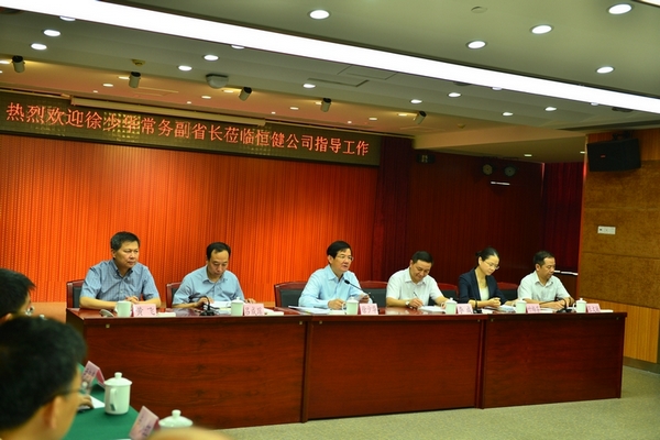恒健公司董事长肖学从恒健公司基本情况、支持基础设施和地方经济建设、支持央企发展、支持新兴产业发展、支持省属国有经济发展和推进国企深化改革、发展基金业务、打造境内外投融资平台、资本市场运作、引进市场化人才、履行社会责任等10个方面的工作,以及下一步的工作思路和需上级协调支持的事项作了专题汇报。