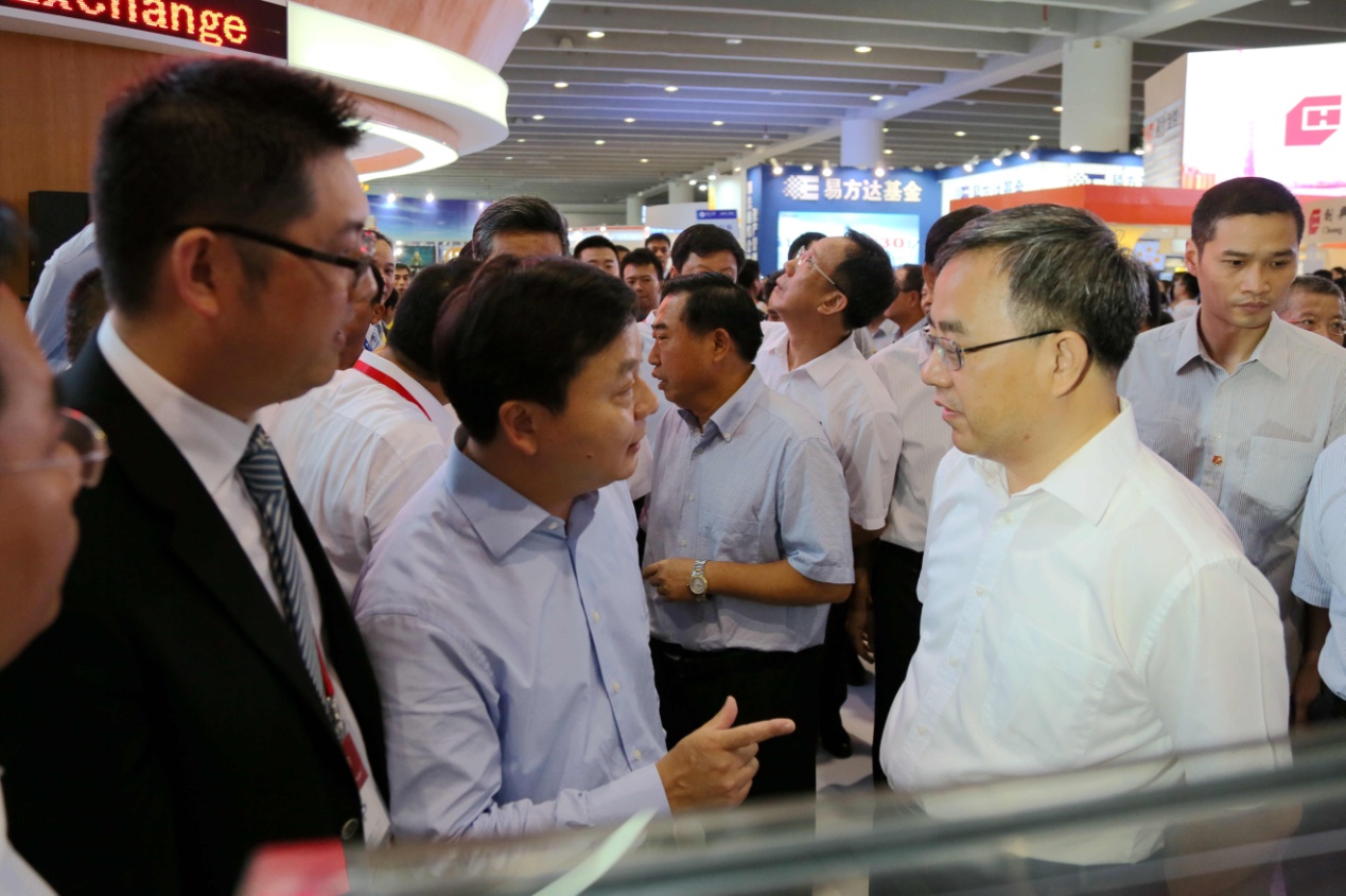 在展会开幕当天,中共中央政治局委员、广东省委书记胡春华参考察了广东省贵金属交易中心的展馆,观看了交易中心的贵金属现货实物展示,详细询问了交易中心发展情况。广晟公司董事长朱伟向胡春华书记汇报了交易中心的成立背景、发展取得的成绩以及下一步的发展规划和目标等。胡春华在听取汇报后,充分肯定了交易中心发展所取得的成绩,并鼓励交易中心进一步提升竞争优势,创新金融服务,维护市场秩序,加快发展步伐,在助推广东产业转型升级中实现更大的发展,为广东金融强省和广州区域金融中心的建设发挥积极作用。