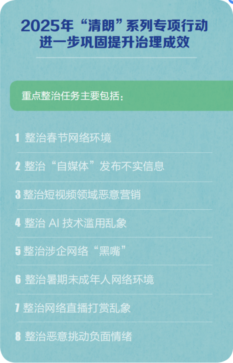 2025年“清朗”系列专项行动重点整治任务