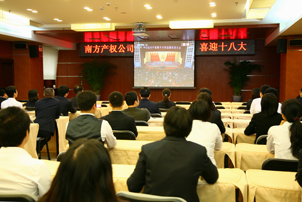 11月8日上午9点,刘闻董事长等公司领导、公司本部及子公司全体员工,在南方产权公司会议厅集中收看了中国共产党第十八次全国代表大会开幕式。