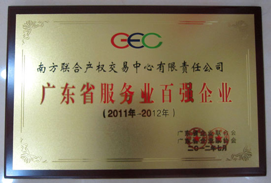 7月25日,“2012年广东省企业百强、优秀自主品牌”发布会暨企业发展高峰论坛在广州隆重举行。会议对入选“2012年广东省企业500强、广东省制造业百强企业、广东省服务业百强企业”等企业进行了表彰。南方产权公司蝉联“广东省服务业百强企业”称号。