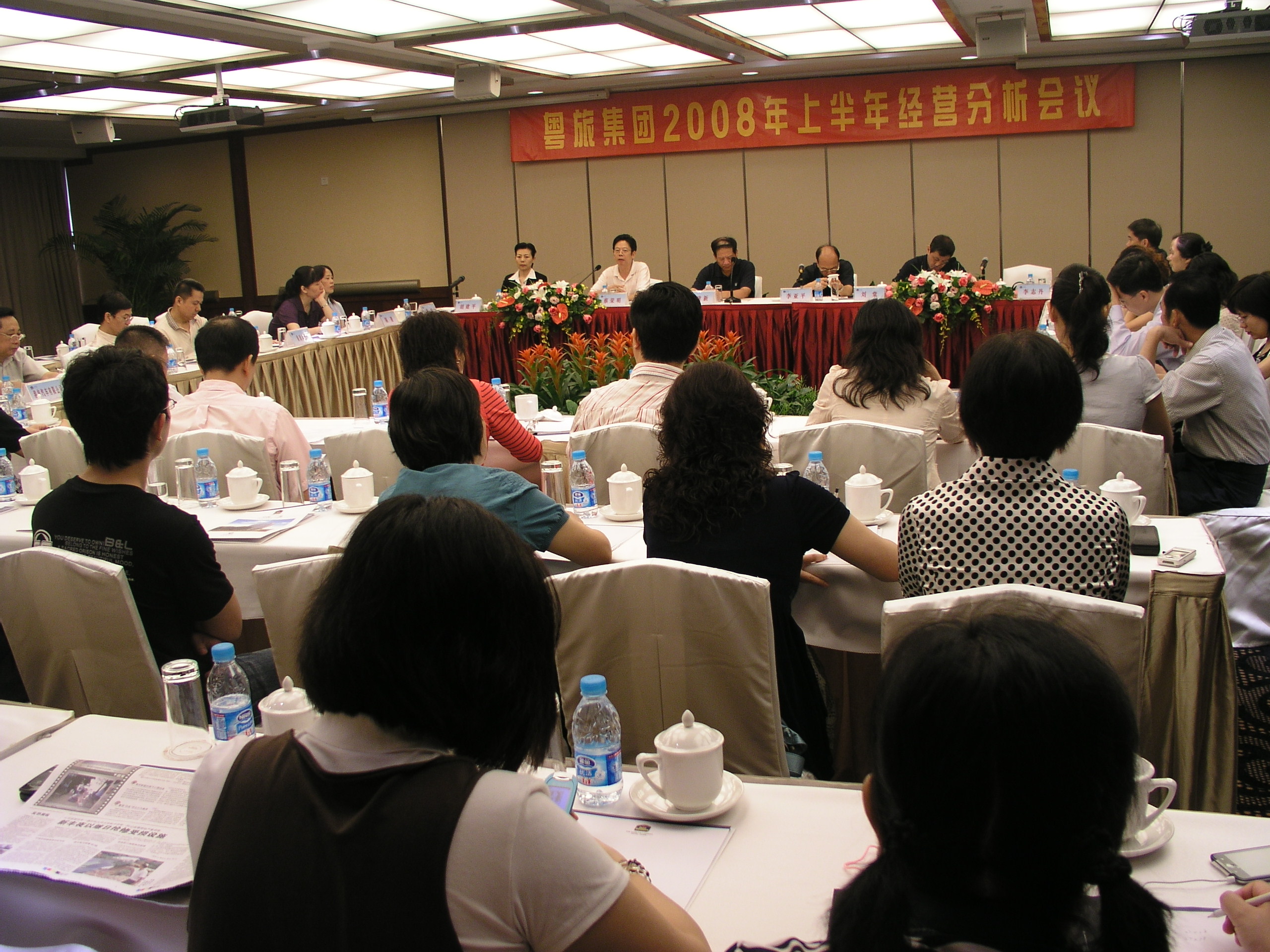 近日,省粤旅集团在白云宾馆召开2008年上半年经营分析会议,集团公司董事长刘建新、副总经理李亚平、蔡荣明、党委副书记胡建平,各企业经营班子、财务经理和本部全体工作人员约50人出席了会议。监事会主席刘棠列席了会议。