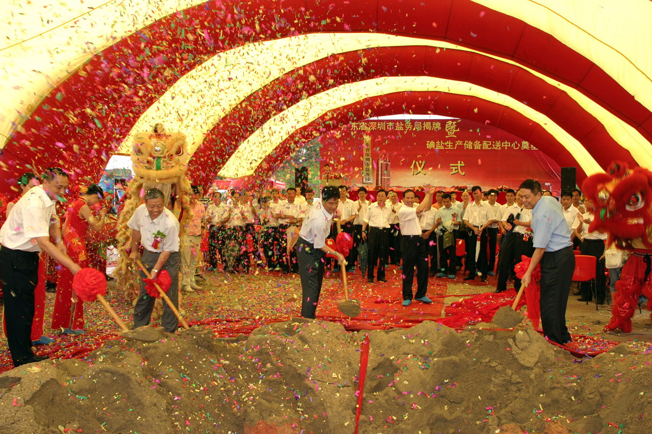 6月27日省盐务局直属深圳市盐务局揭牌暨碘盐生产储备配送中心奠基仪式在南山区曙光仓储区隆重举行。深圳市政府副秘书长出席了活动仪式,中国盐业协会、广东省盐务局以及深圳市发改、贸工、公安、卫生、质监等有关部门的领导、嘉宾应邀参加了活动仪式。