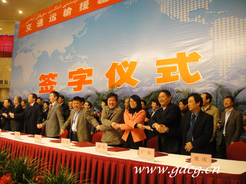 2011年1月11日,省交通运输厅陈冠雄副厅长、省交通集团邓小华副总经理、省高速公路有限公司李晋峰总经理等一行前往新疆,参加交通运输部组织召开的交通运输援疆工作推进会。会上,李晋峰代表广东与新疆维吾尔自治区交通建设管理局签署G314线奧依塔克镇至布伦口段公路项目代建框架协议书。1月13日,省交通集团邓小华副总经理,省高速公路有限公司李晋峰总经理等又赶赴喀什,会同当地公路局以及援建项目设计单位负责人,一同前往克州现场察看该公路项目。