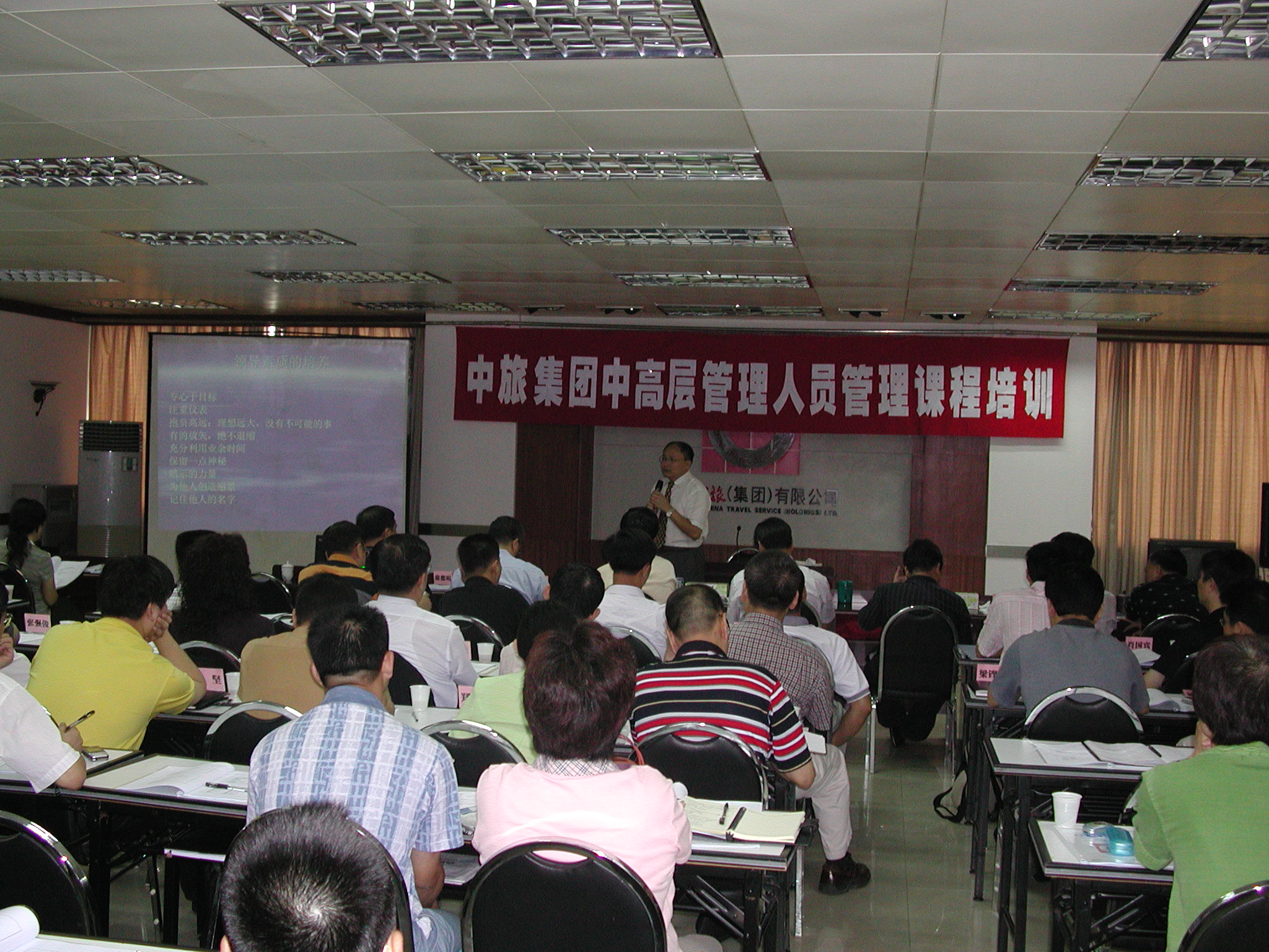 2006年7月26日,广东中旅集团组织开办了集团公司中高层管理人员管理课程培训班,邀请了华南师范大学人才测评与人力资源研究马博士,主讲了《领导艺术与管理创新》课程,拉开了广东中旅集团中高层管理人员培训序幕。参加人员有集团公司领导班子成员,以及职能部门主管以上和二级企业助理总经理以上管理人员,近150人。
