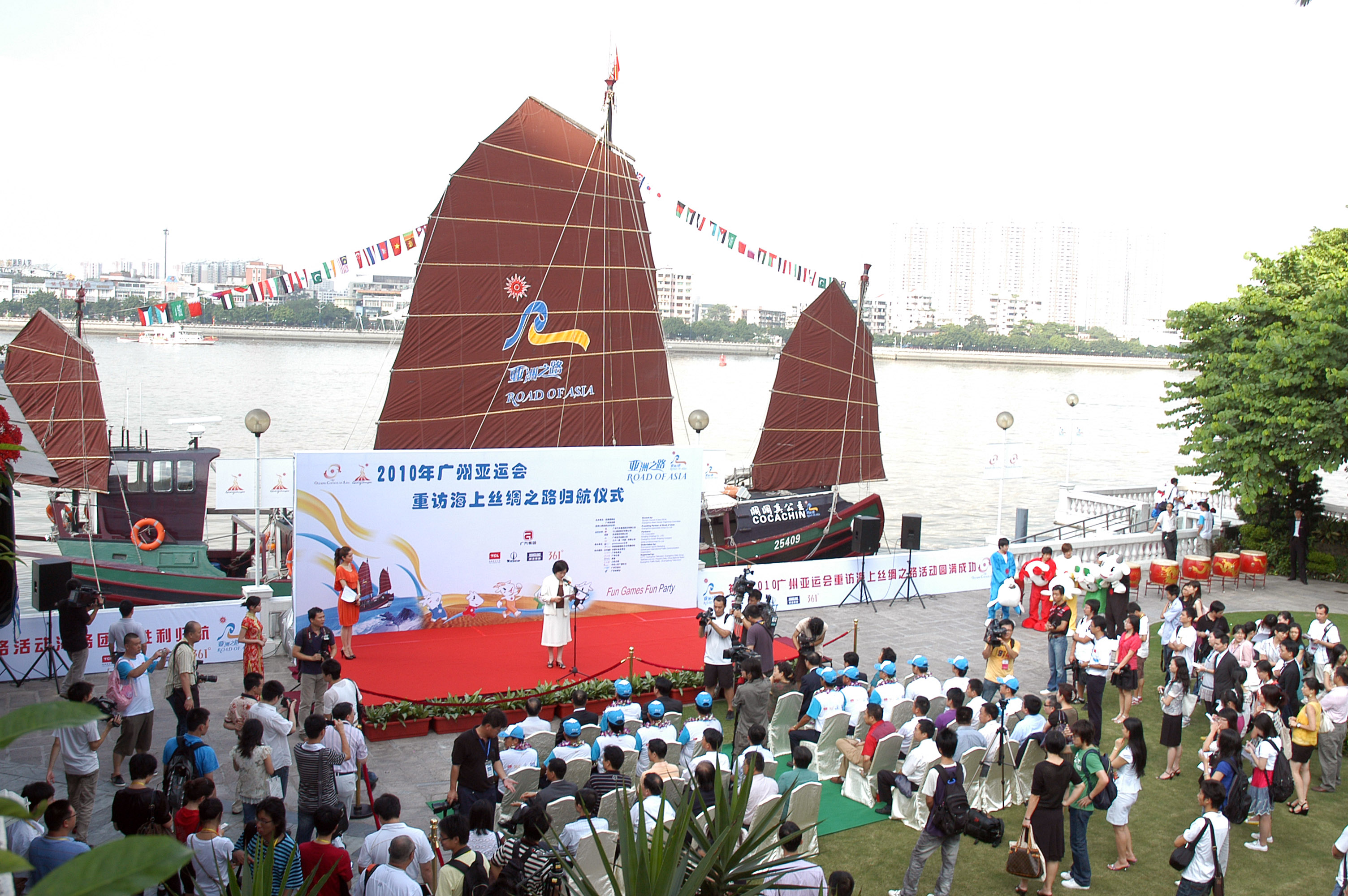 2009年7月9日,白天鹅宾馆花园码头迎来了一位充满传奇色彩的美丽“公主”,承载着亚运会宣传推广任务的“阔阔真公主”号仿古船在经历近4个月的航程、30多个国家和地区后,最终完成了广州亚运使者的神圣使命,在白天鹅宾馆花园码头顺利停靠。