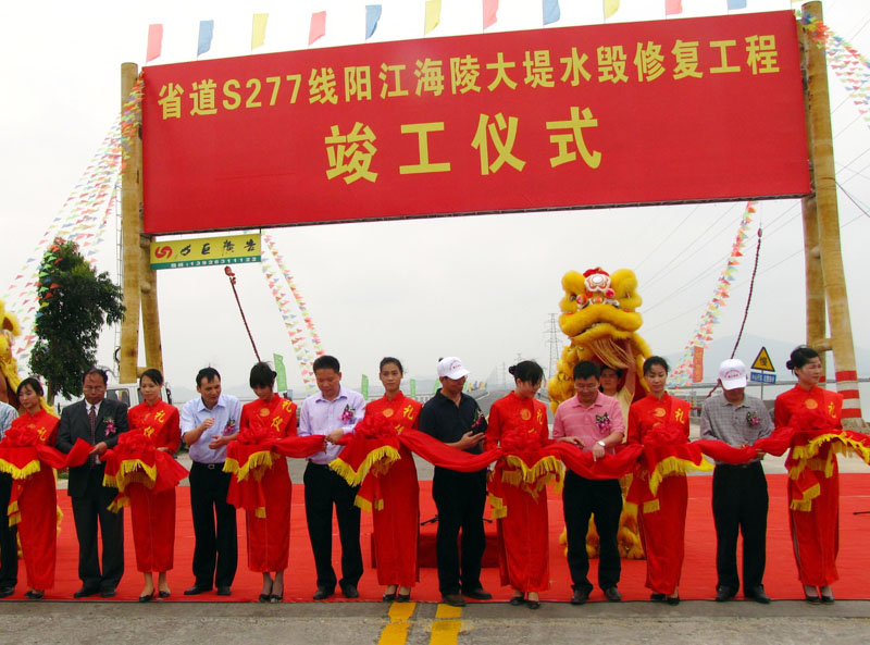省长大公路工程有限公司不仅在去年国庆前后的海陵抢险大会战中表现出色,而且在随后11月展开的修复工程中,作为建设的主力军,尽职尽责,克服了海陵大堤边设计、边施工、边通车造成的工程量大、工期紧、安全问题突出等困难,安全高效优质地完成了大堤修复任务,终于赶在“五一”前夕,将通畅、美丽的海陵大堤交回到阳江人民手中。