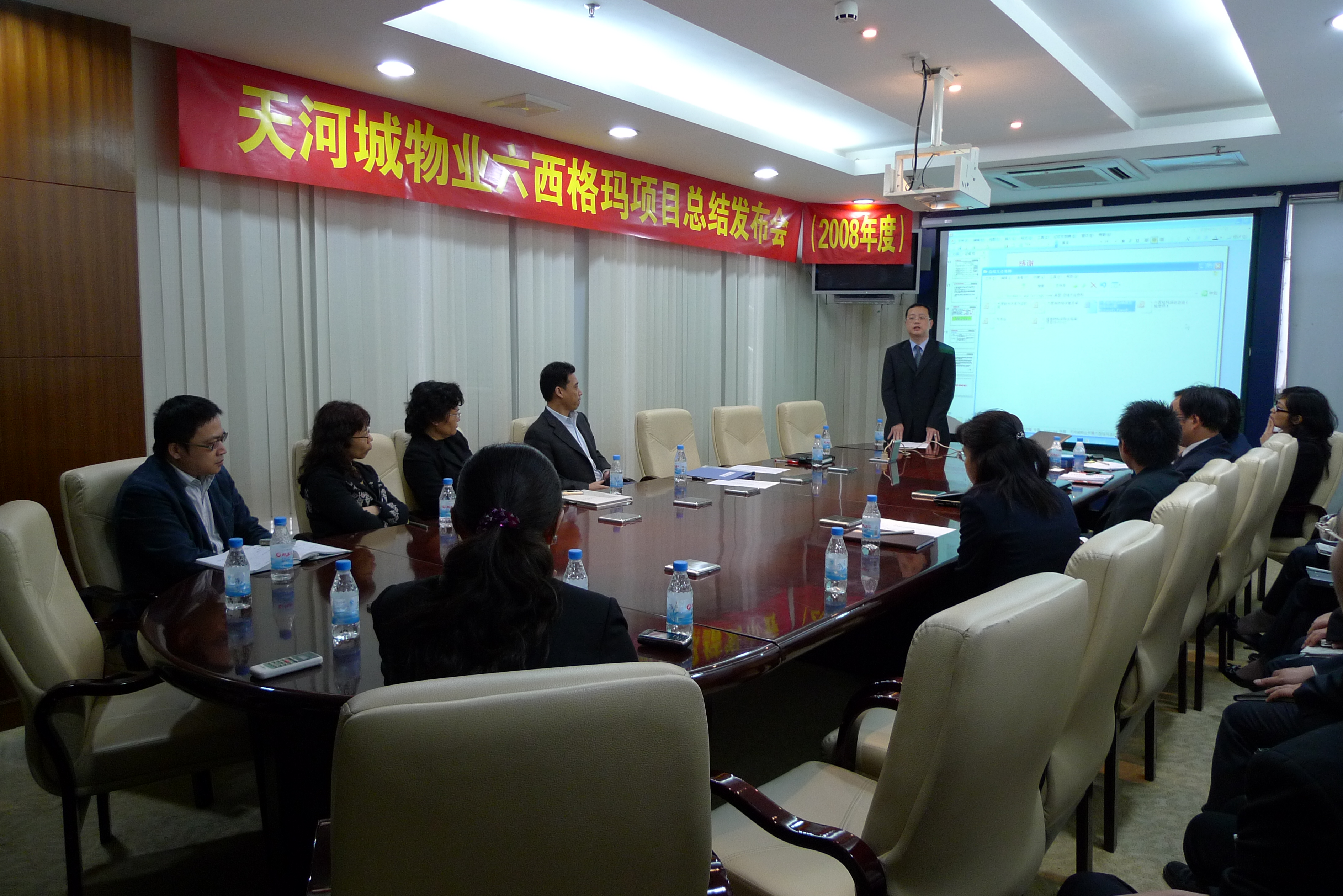 近日,粤海控股公司旗下的天河城物业08年六西格玛项目总结会在天河城八楼会议室举行。会议总结了天河城物业08年组织实施的19个六西格玛项目的推行情况,在会上发表了“降低气浮池异味对周边环境的影响”、“提高大厦前台访客办理效率”等5个推选项目,并为23名学员颁发了绿带培训证书,15名学员颁发了绿带资格证书。