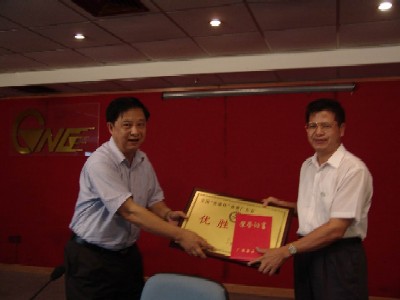 以“掌握安全生产知识,争做遵章守纪职工”为主题的“安康杯”竞赛活动,是由省总工会和省安全生产监督管理局共同组织的,全省有5000多家企业和232万职工参与了活动。航运集团各企业都积极参与了该项活动,其中广东珠船航运有限公司在活动中取得优异成绩,获得“全国‘安康杯’竞赛广东省优胜企业”奖。图为:集团纪委书记梁洪发同志(左)向广东珠船航运有限公司总经理朱各海同志代颁奖牌。