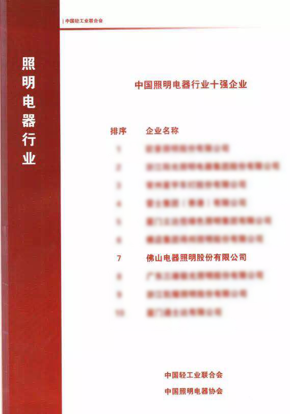 本次评选本着公正、科学的原则,中国轻工业联合会对参选企业2018年度的营业收入、利润总额、营业收入利润率、税收占利税比重、研发投入及营业收入增速等六项指标综合评分,按统一标准体系进行评价。入选这两个专业榜单,是广大消费者、行业专家媒体等社会各界对佛山照明的高度认可。