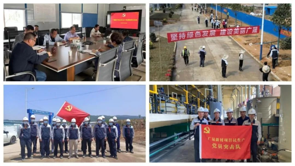 面对多设备调试、各类验收、多线作战等重点难点,广晟新材坚持党建引领,把党旗插在工地上、车间里,围绕项目建设高质量抓好组织生活,围绕“急难险重”任务深入开展党员突击队冲锋攻坚,带动广大员工全力推进项目建设。