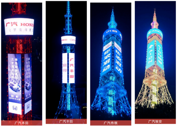 11月1日,省广集团独家代理的广汽集团广州地标广告正式发布,省广集团携手广汽集团及其下属企业广汽本田、广汽丰田、广汽传祺和广汽埃安组团焕新亮相广州花果山电视塔,通过升级数字化户外传播形式,点亮广州地标。