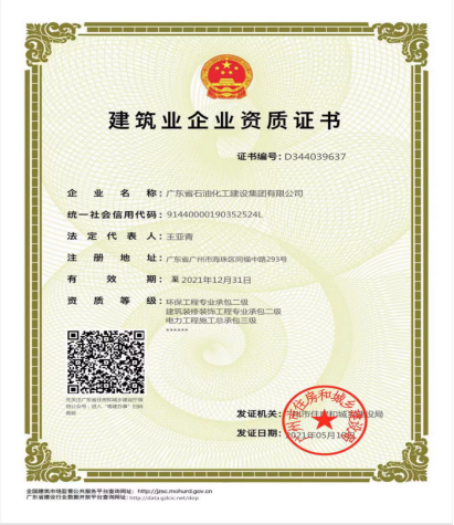 至此,化建集团共拥有化工石油工程施工总承包、机电安装工程总承包、消防设施工程专业承包、建筑机电安装工程专业承包等四个一级资质,市政公用工程施工总承包、建筑工程施工总承包、环保工程专业承包、建筑装修装饰工程专业承包等四个二级资质以及电力工程施工总承包三级资质。