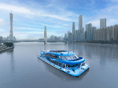 2021年,粤港澳大湾区首艘入级纯电动游船“金龙鱼”号首航,开启珠江游绿色新时代;2024年,“广晟控股”号投入运营。这两艘由蓝海豚旅运公司所投运的游船,年均减少二氧化碳排放约560吨。