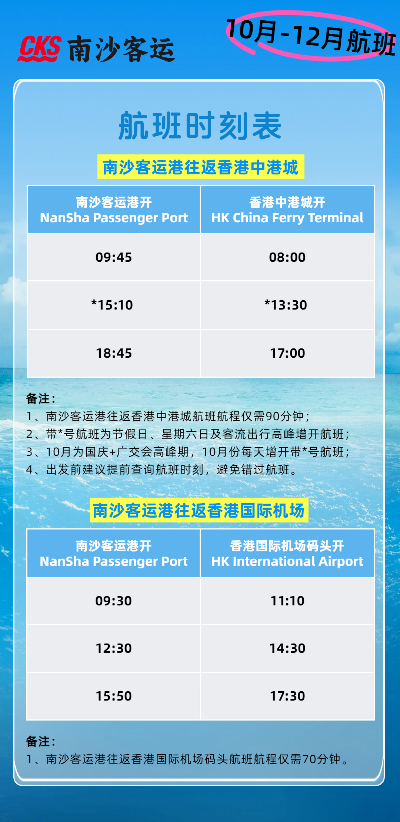 在国庆期间,琶洲港往返香港中港城的航班将推出两档优惠船票: