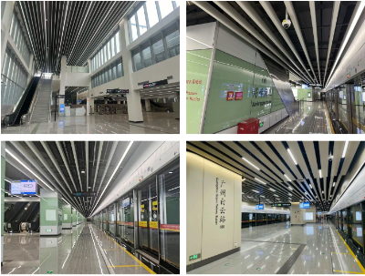 广州地铁十二号线浔峰岗站(左上)、浔峰岗北站(右上)、聚龙站(左下)、广州白云站(右下)