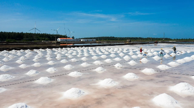 与此同时,传统产业也在焕发绿色生机。盐业集团聚焦绿色生态,在所属徐闻盐场的盐田上,通过湛江市非遗十二道古法晒制技艺将天然海水经日光与海风“雕琢”成生态海盐,全程零污染排放,老手艺在新时代写出“低碳答卷”。